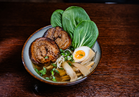 Makaron ramen/ bulion drobiowy/ tare na bazie soli/ boczek chashu/ bambus menma/ pak choi/ jajko ajitama/ szczypior